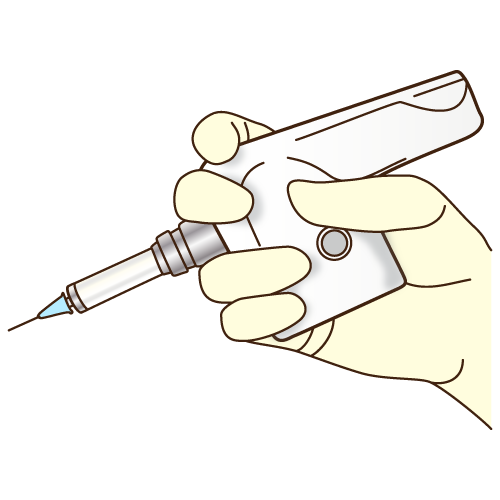 麻酔時の痛みの原因に麻酔液の注入速度のムラがあります。このリスクを抑えるため電動麻酔器を使用します。一定速度で治療部位に麻酔液を入れることができ、痛みを感じにくくします。