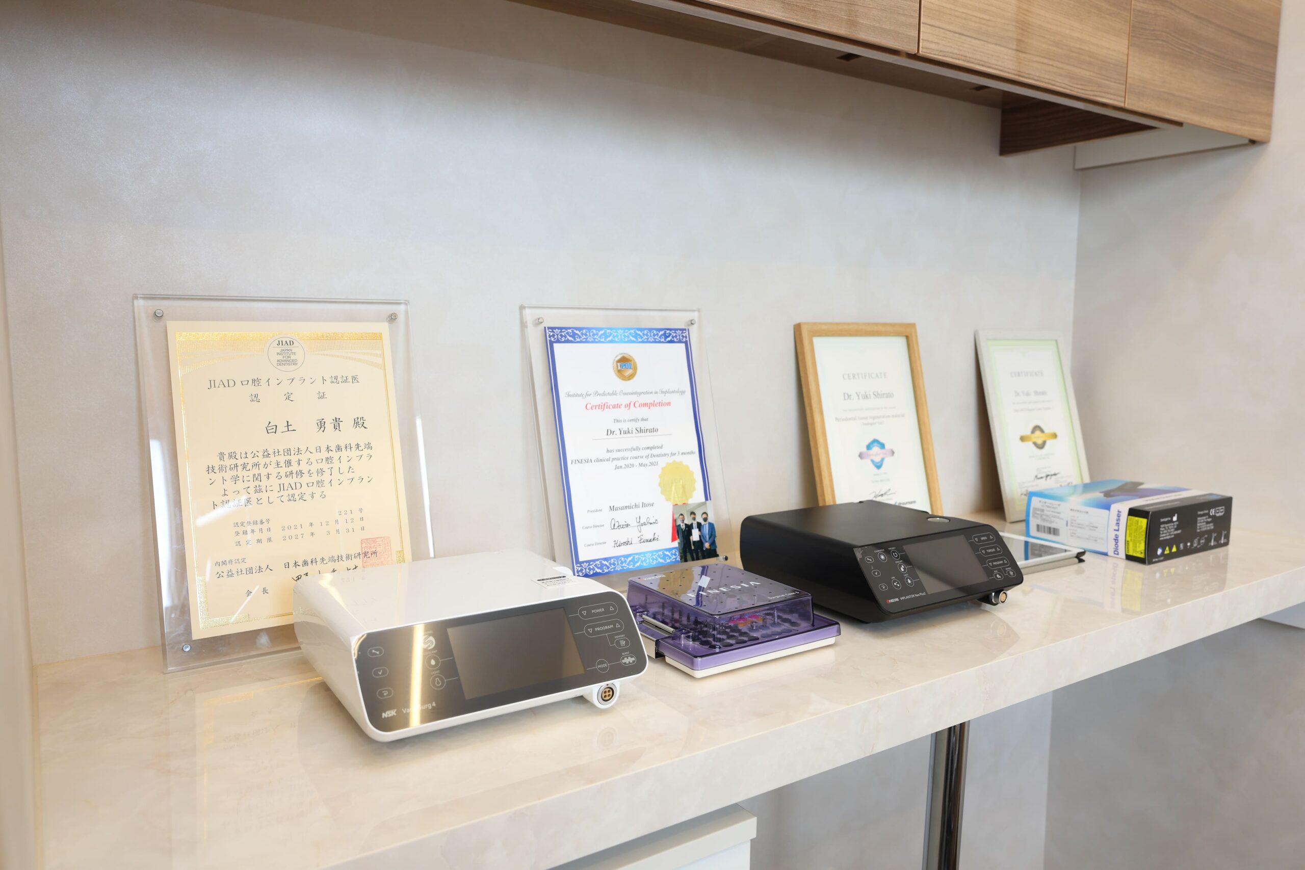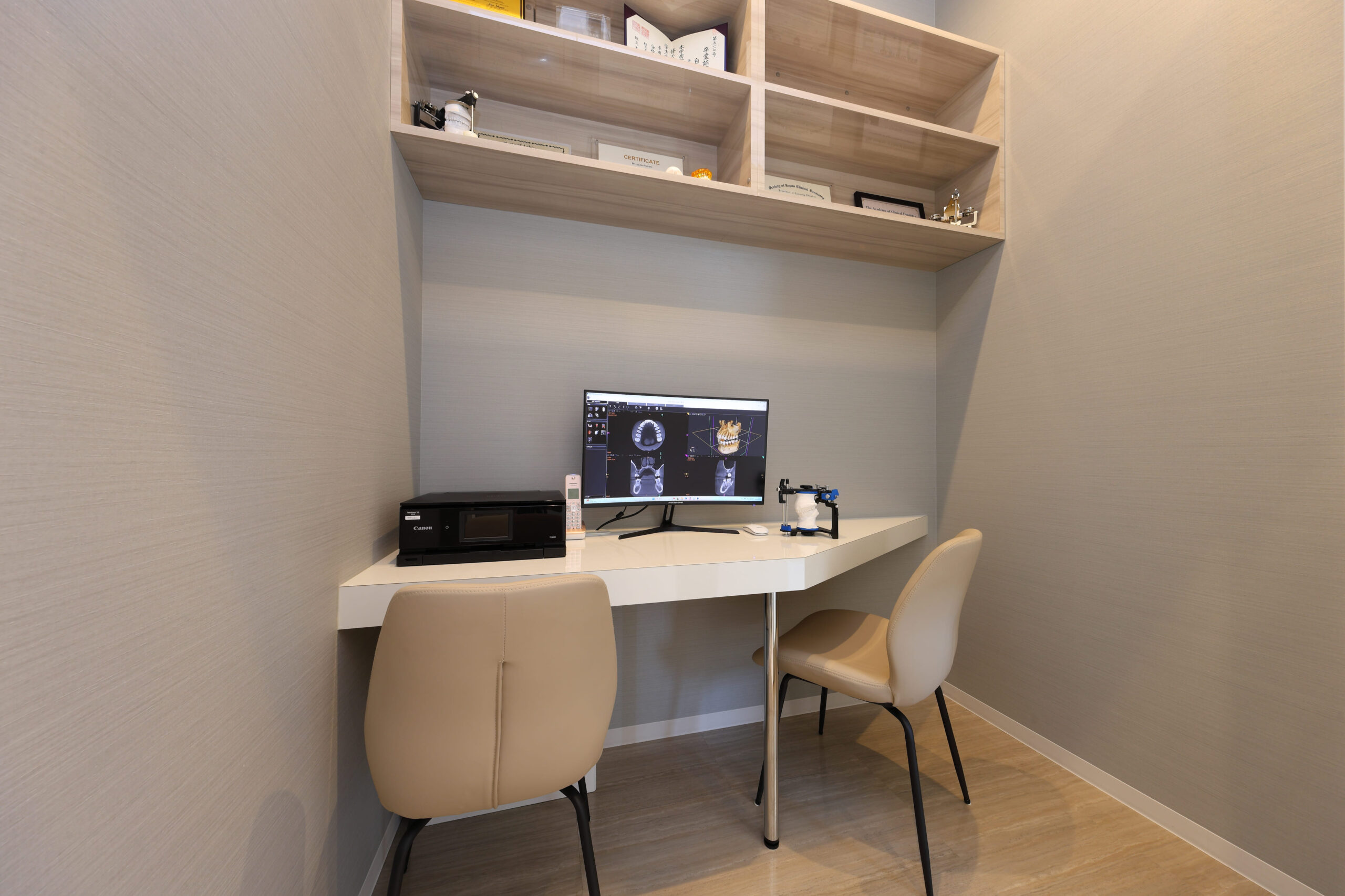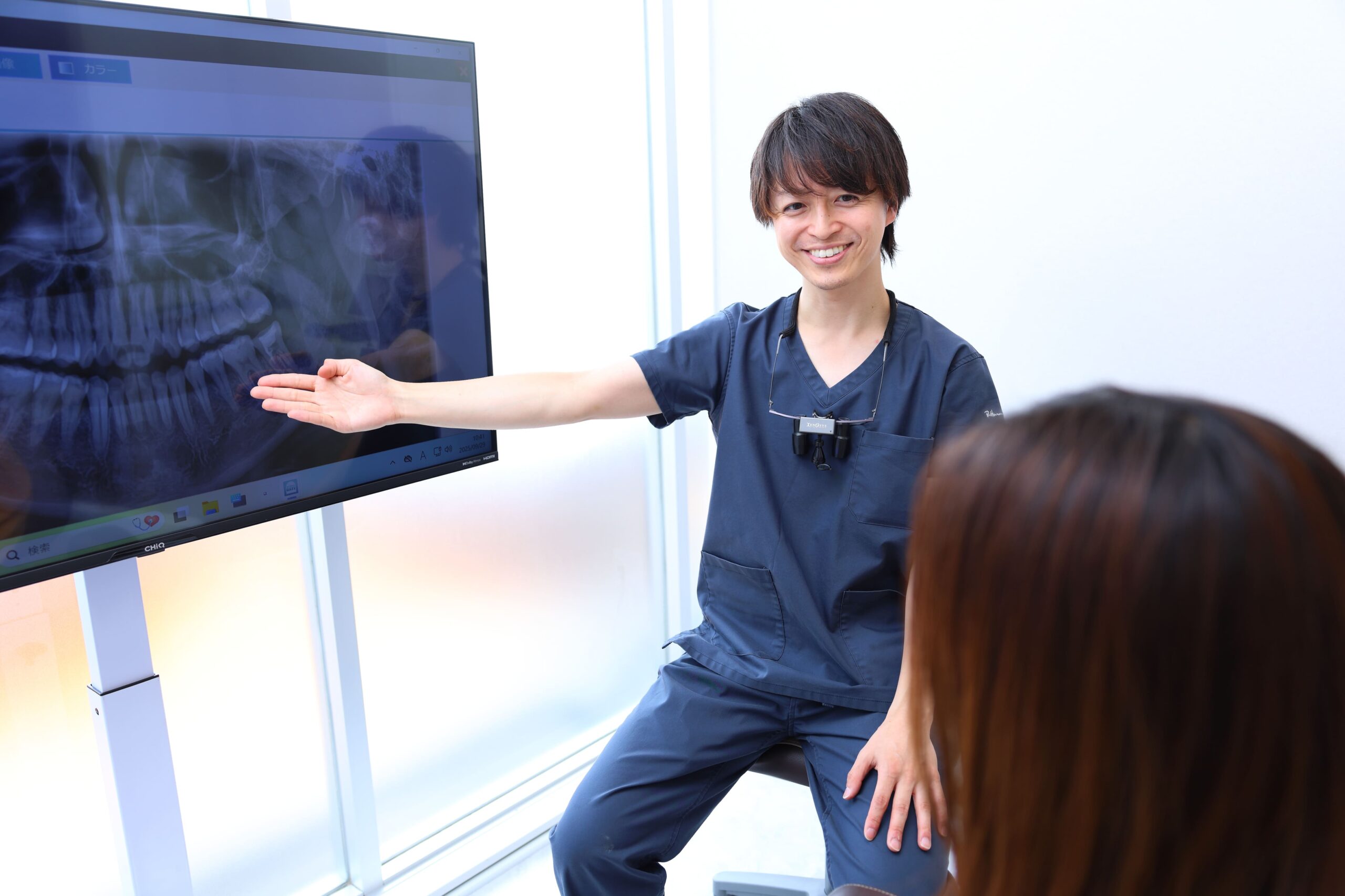 診療台ごとに説明用モニターを設置し、患者様に治療内容をお伝えしています。レントゲン画像や、口腔内カメラで撮影した内容、説明用アニメーションを映し出すことができるため、患者様の歯科治療に対する不安感を軽減できます。