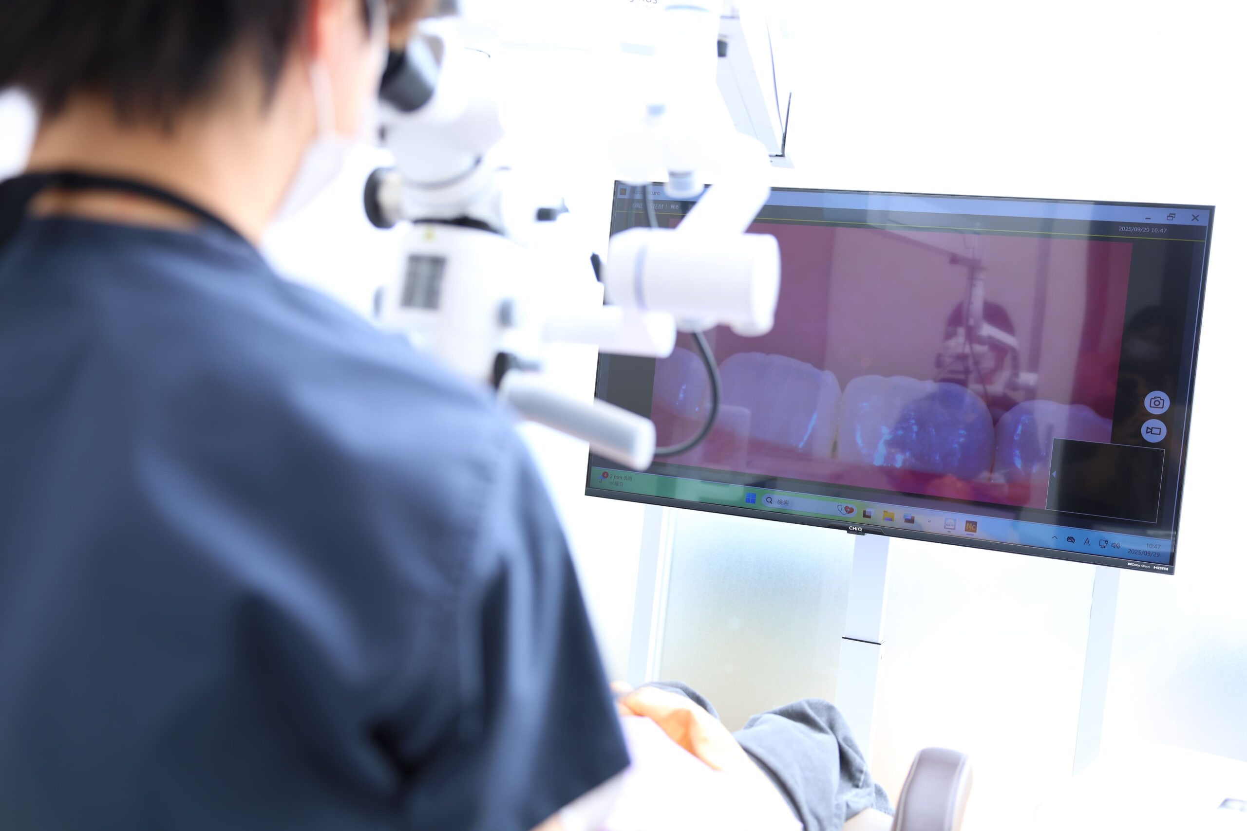 拡大鏡を使用することで患部を拡大して確認できます。そのため、肉眼での治療で見落としがちな箇所もしっかり状況を把握し、むし歯の取り残しや余計に削りすぎるリスクを軽減します。